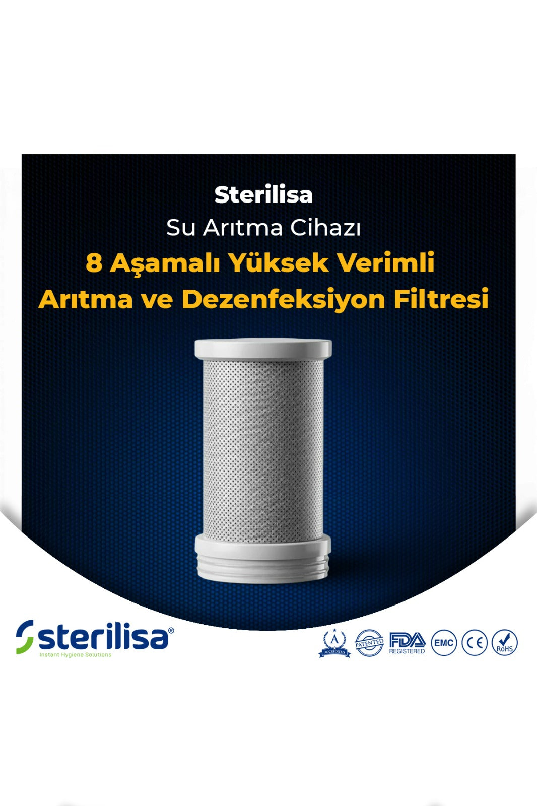 İçerisindeki patentli Sterilisa Teknolojisi ile şebeke suyunda bulunan veya arıtma cihazlarının giderim sağlayamadığı bakteri, virüs, maya, küf ve diğer hastalık yapan mikroorganizmaları su akışı ile eş zamanlı olarak anında etkisiz hale getirir.