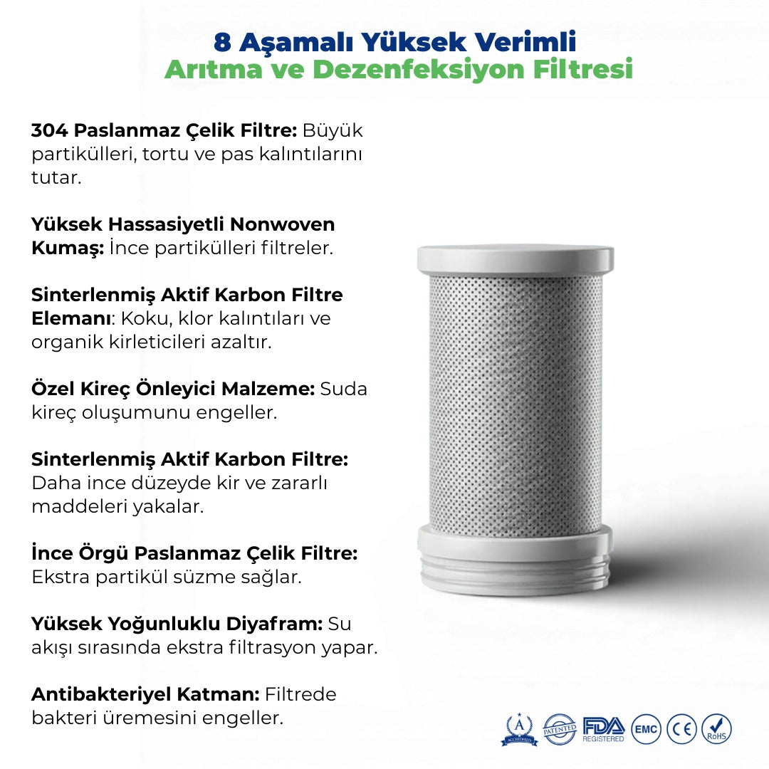 8 Aşamalı Yüksek Verimli Arıtma ve Dezenfeksiyon Sistemi
